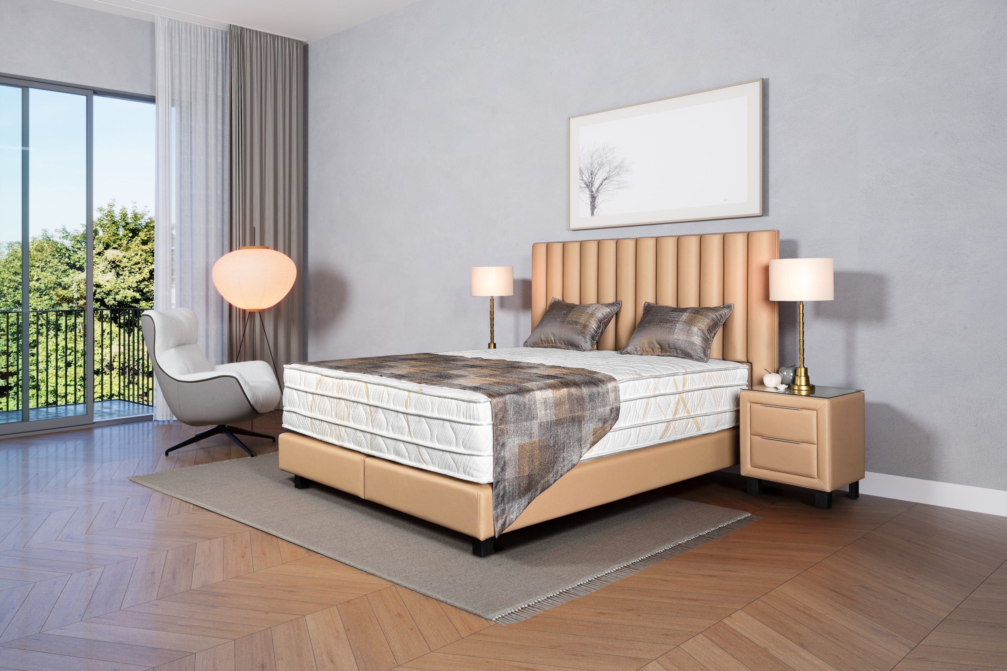 Inspiriran skandinavskim interijerima, Elegance donosi čistoću linija i toplinu bouclé tkanine u vašu spavaću. Svaki detalj — od zaobljenog uzglavlja do brušenih metalnih nogu — govori jezik modernog luksuza.
